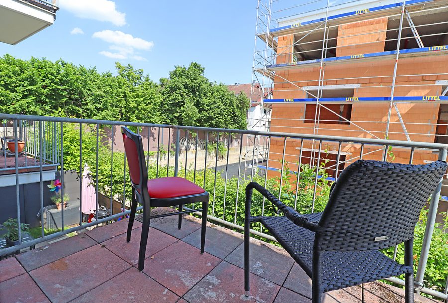 Der nächste Raum links ist das Wartezimmer/Büro. Von hier hat man Zugang zu einem großen Balkon, der nach Süden-Osten ausgerichtet ist.