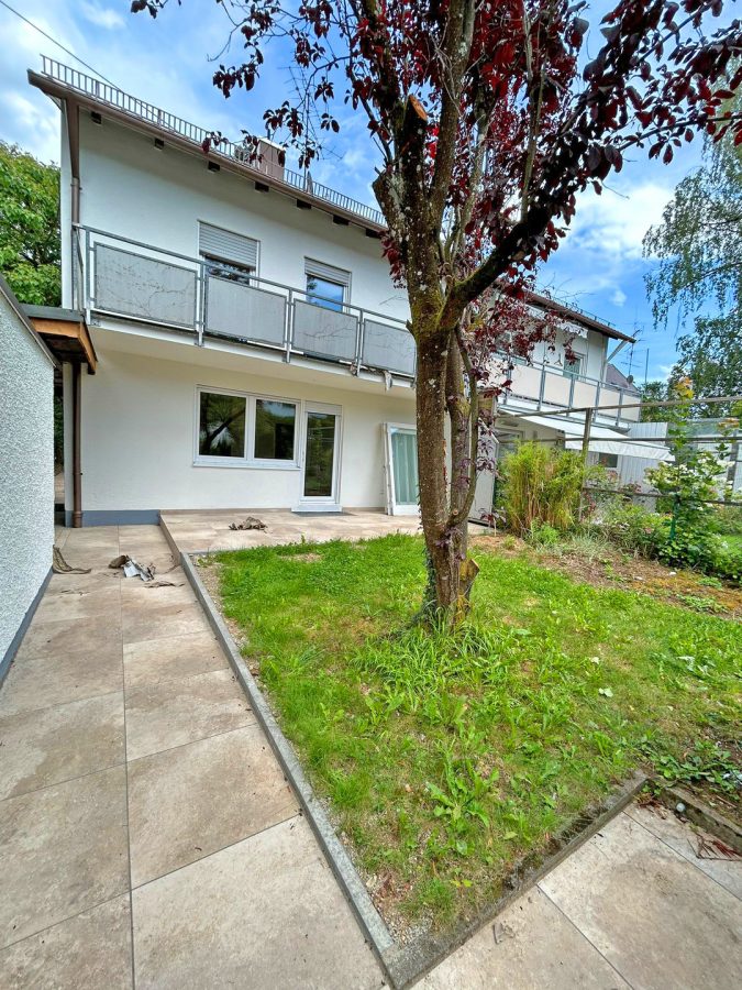 Vom Wohnzimmer aus haben Sie Zugang zur traumhaften Süd-West-Terrasse mit Garten. Die Hecken bieten Ihnen komfortablen Sichtschutz. Die Terrasse lädt zum Verweilen ein.