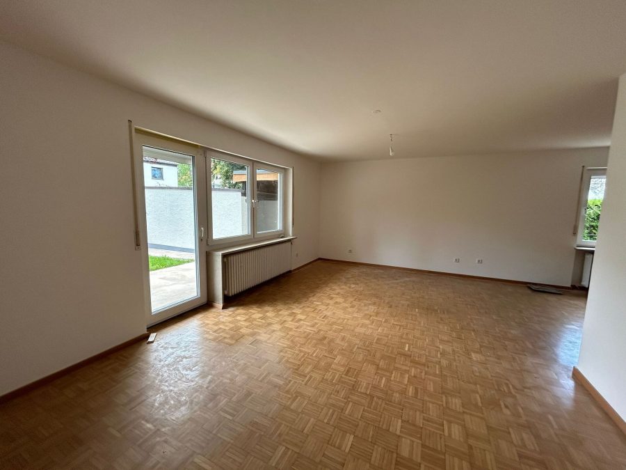 Durch die Süd-West-Ausrichtung und die großen Fensterfronten gelangt viel Sonne ins Wohnzimmer. Hier ist genug Platz, um einen großen Esstisch, sowie eine gemütliche Couchlandschaft zu integrieren.