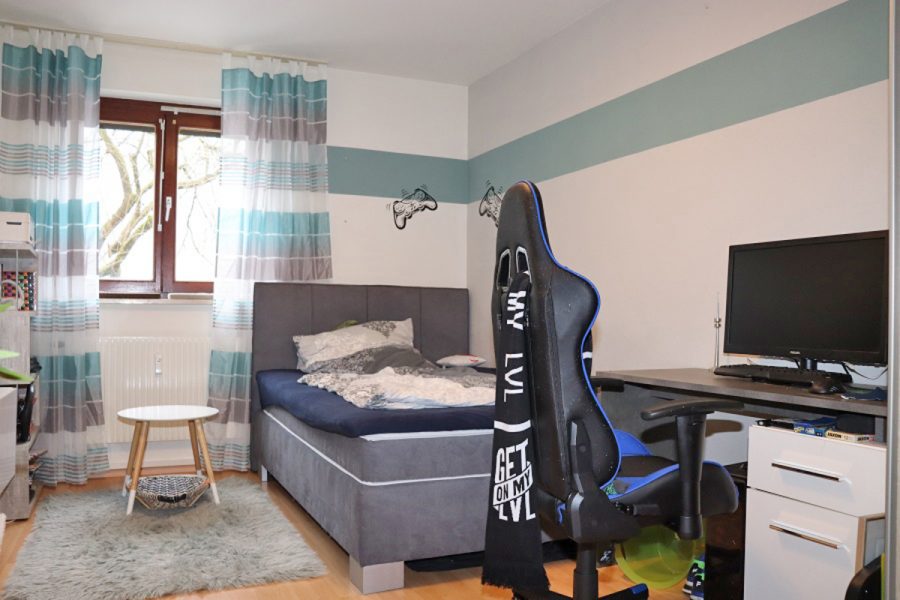 Gegenüber befindet sich das Gäste-/Kinderzimmer, welches Richtung Osten gelegen ist. Das Zimmer ist gut geschnitten und ist, wie alle weiteren Wohnräume, mit Laminatboden versehen.