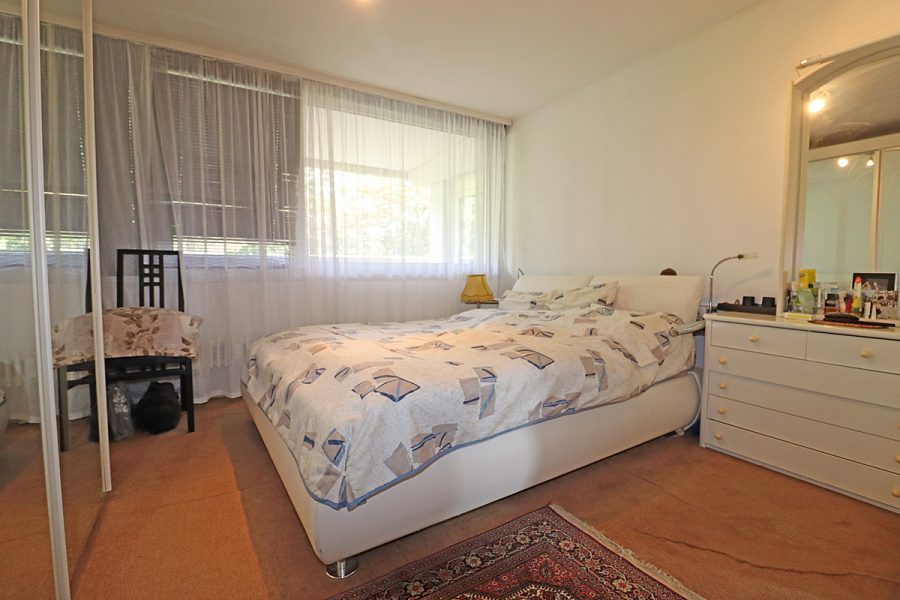 Das Schlafzimmer befindet sich im hinteren Bereich der Wohnung und bietet genug Platz für ein XXL-Bett und einen XXL-Kleiderschrank.