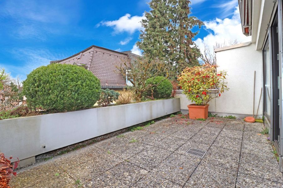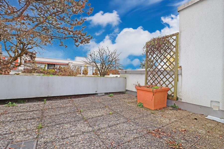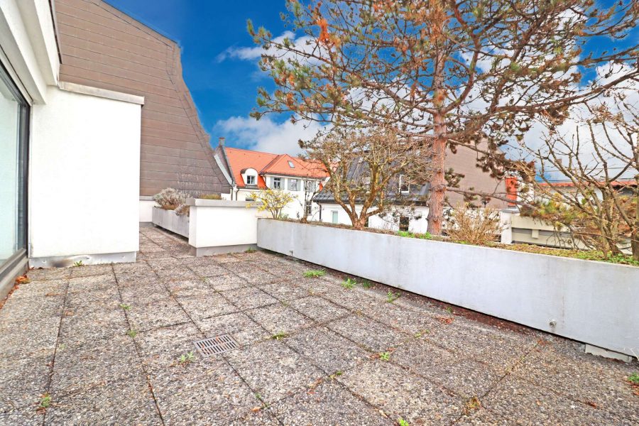 Das Wohnzimmer ist der perfekte Ort, um Zeit mit Familie und Freunden zu verbringen. Große Fenster sorgen für viel Tageslicht und schaffen eine freundliche Atmosphäre. Von hier aus gelangen Sie auf die traumhafte nach Süd-Westen ausgerichtete zweite Dachterrasse.