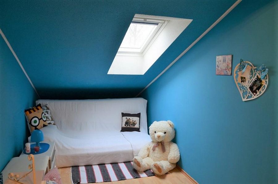 Auch die Dachfenster sorgen für viel Helligkeit und wohltuende Wärme. Die zwei Schlafzimmer sind auf diesem Geschoss zu finden und runden das Wohnerlebnis charmant ab.