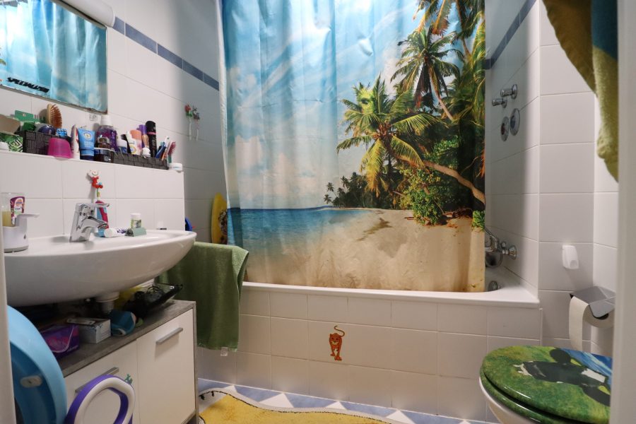 Weiter geht es Richtung Bad. Dies ist modern gefliest und verfügt über eine Badewanne und WC.