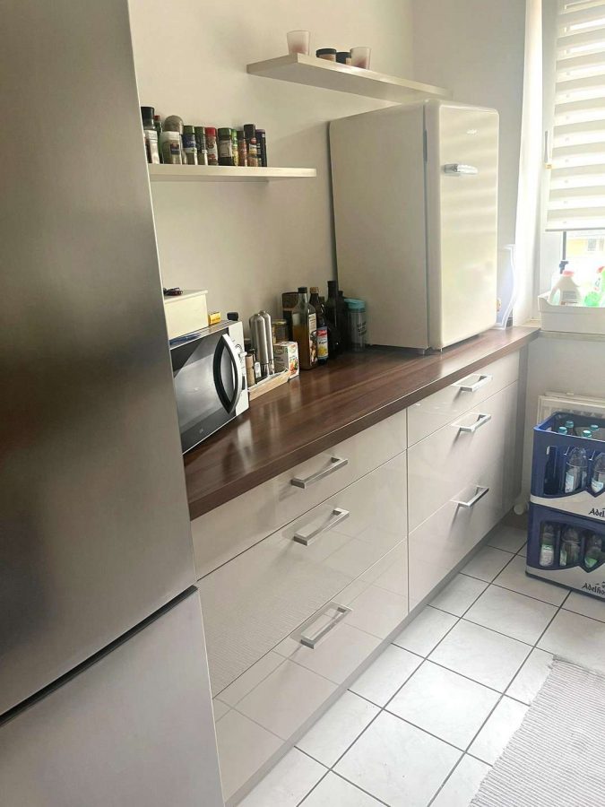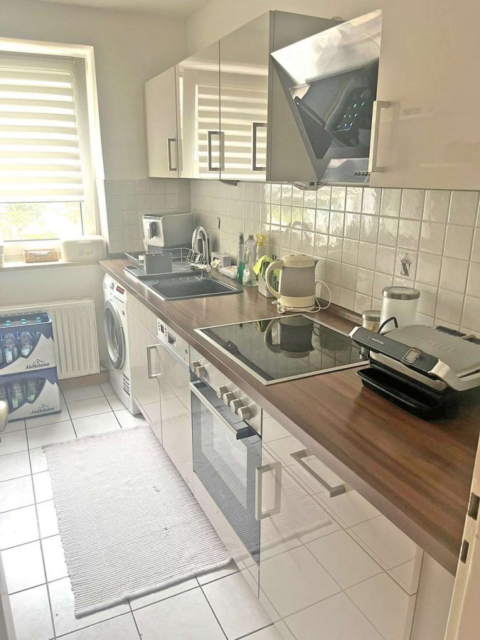 Danach folgt die Küche. Die moderne Einbauküche kann preiswert vom Vormieter abgelöst werden.