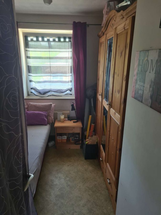 Weiter geht`s zum Schlafzimmer, welches genug Platz für einen großen Schrank und ein Doppel-Bett bietet.