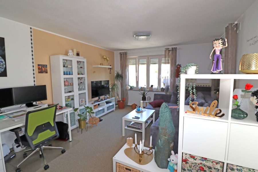 Zur Linken gelangen Sie zum geräumigen Wohn- und Essbereich. Der Bereich bietet Platz für eine schöne Wohn- und Esslandschaft für gesellige oder auch ruhige, entspannte Abende.
