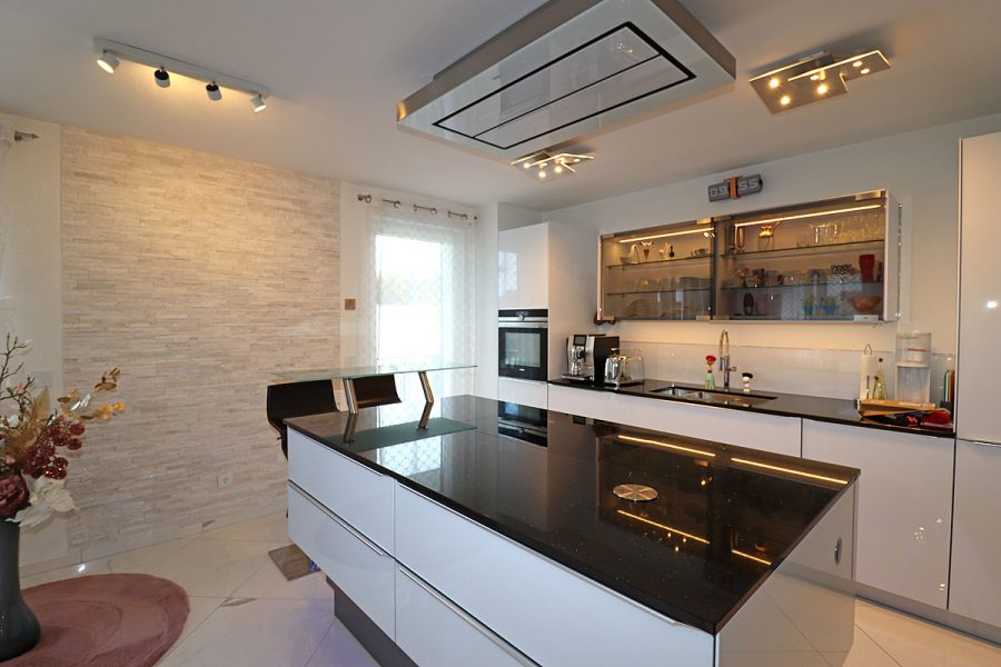 Die höhenverstellbare Kochinsel lässt jedes Kochen zu einem einzigartigen Erlebnis werden. Zusätzlich kann diese beleuchtet werden.