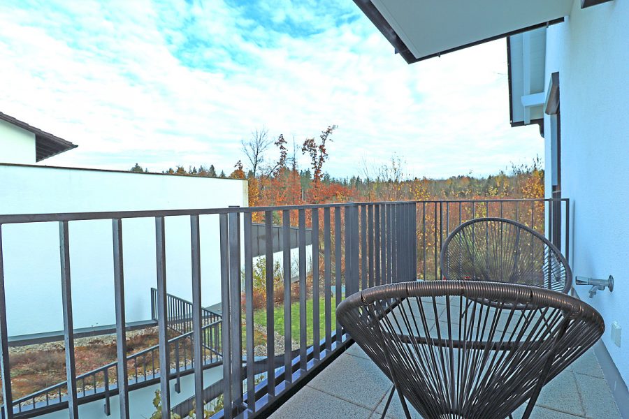 Von der Küche aus gelangt man auch zu der 1. Loggia, von der man einen unverbauten Blick Richtung Waltruderinger Forst hat.