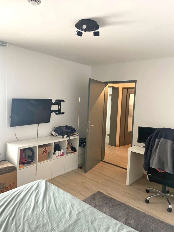 Gegenüber befindet sich das helle Schlafzimmer, welches Richtung Süden gelegen ist. Das Zimmer ist gut geschnitten und ist, wie alle weiteren Wohnräume, mit hochwertigem PVC-Boden versehen.