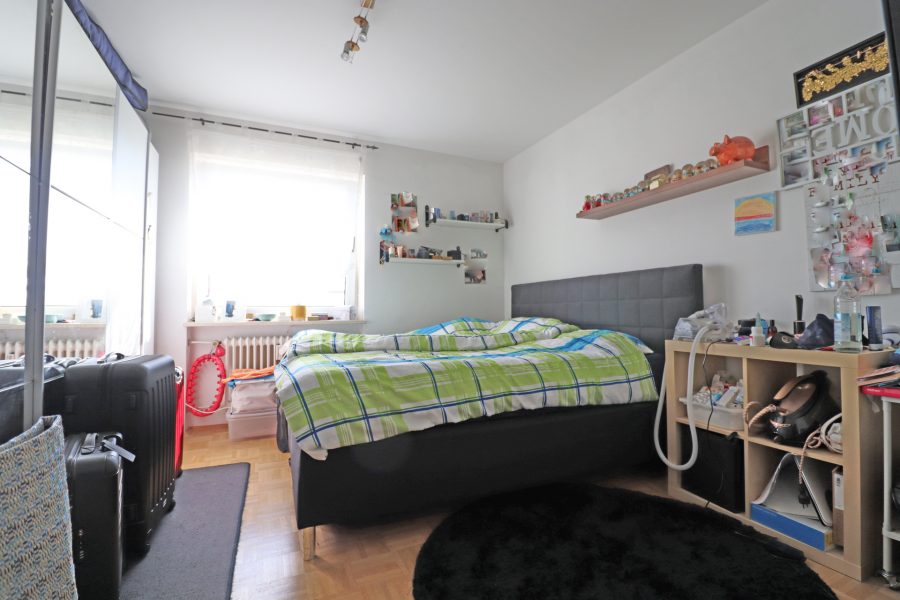 Neben dem Wohnzimmer befindet sich das Schlafzimmer, welches genug Platz für einen großen Schrank und ein XXL-Bett bietet. Als nächstes kommt das Kinder-/Arbeitszimmer.