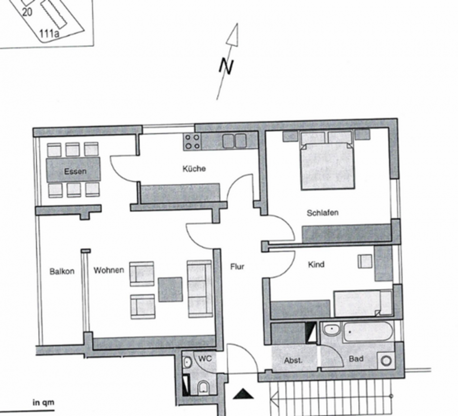 Sie erreichen die Wohnung durch ein gepflegtes Treppenhaus. In der Wohnung befinden sich 3 Zimmer und ein separater Essbereich, wo Sie Platz für einen großen Esstisch haben.
