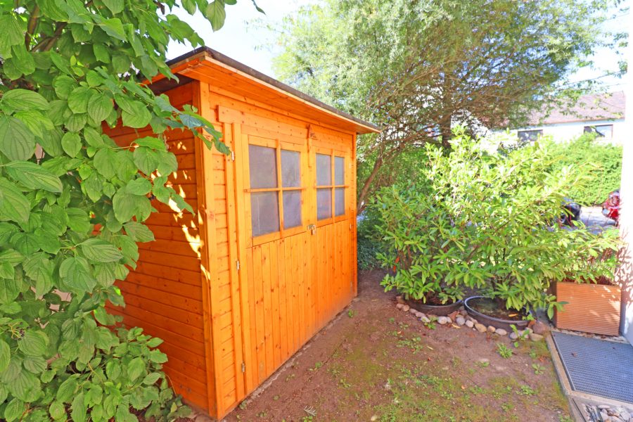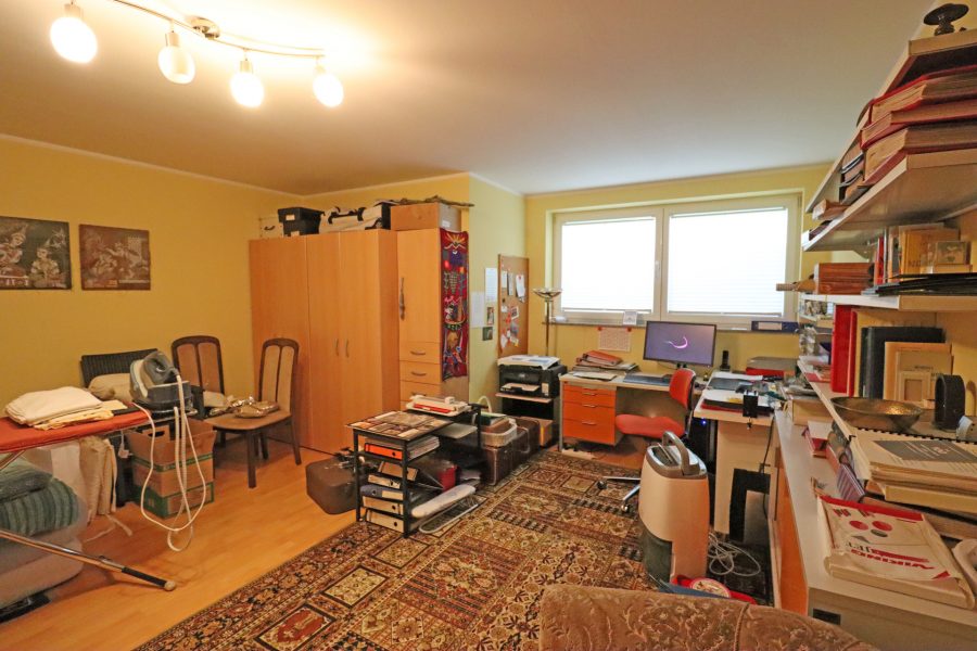 Über eine Treppe im Flur gelangen Sie ins UG. Hier befindet sich eine Abstellkammer, ein zusätzliches Duschbad mit WC, sowie der großzügig geschnittene wohnraummäßig ausgebaute Hobbyraum mit Fußbodenheizung.