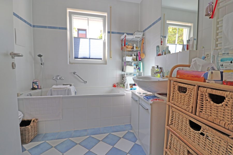 Danach gelangen Sie zu dem großen Bad, welches mit einer Badewanne, Dusche, WC und einem Fenster ausgestattet ist. Der Handtuchheizkörper sorgt für zusätzlichen Komfort.