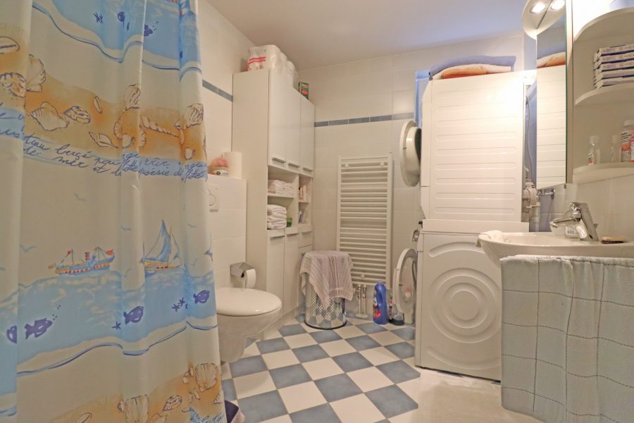 Im Duschbad haben Sie dann zudem die Möglichkeit eine Waschmaschine/Trockner anzuschließen.