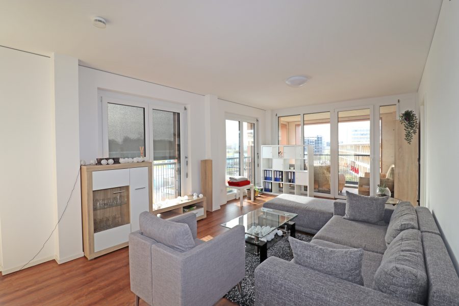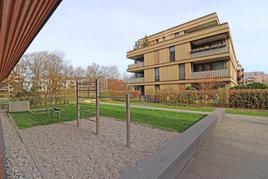 Die Wohnung befindet sich im 3. OG einer modernen und nachhaltig gefertigten Wohnanlage aus dem Jahr 2018 in München Schwabing-Freimann.